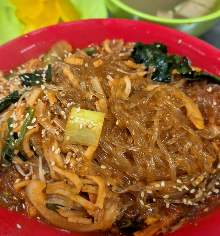 매운잡채는 이곳의 자랑이에요. 매콤한 양념이 잘 배어 있는 잡채는 한 입 먹는 순간 그 맛에 빠져들게 돼요. 신선한 채소와 쫄깃한 당면이 조화를 이루며, 고소한 참깨가 뿌려져 있어 더욱 맛있답니다.