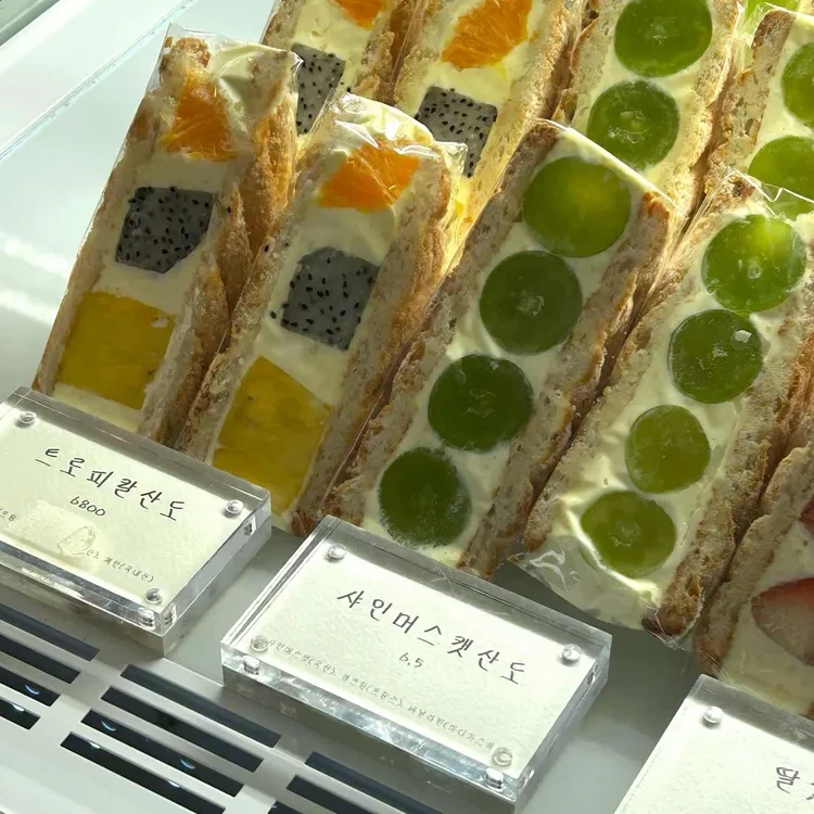 이 샌드위치들은 신선한 과일과 부드러운 크림이 조화를 이루어 정말 맛있답니다. 또한, 과일 케이크도 인기 메뉴 중 하나로, 다양한 과일이 들어가 있어 시각적으로도 즐거움을 줘요.
