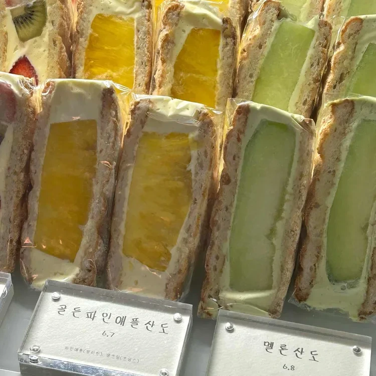 윤숲의 추천 메뉴는 바로 과일 샌드위치입니다. 특히 '트로피칼샌드'와 '사인머스캣샌드'는 꼭 드셔보셔야 해요.