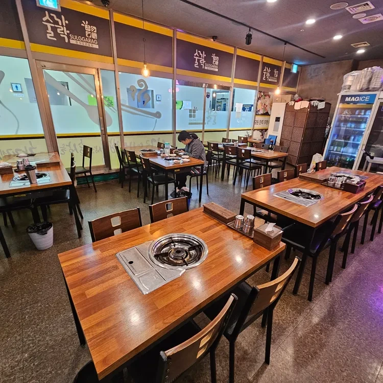 식당 내부는 현대적인 인테리어로 꾸며져 있어요. 따뜻한 조명과 깔끔한 테이블들이 어우러져 아늑한 분위기를 만들어주고, 친구들과 함께 오기에도 좋은 장소예요. 특히, 각 테이블에 마련된 그릴에서 직접 고기를 구워 먹는 재미도 쏠쏠하답니다.