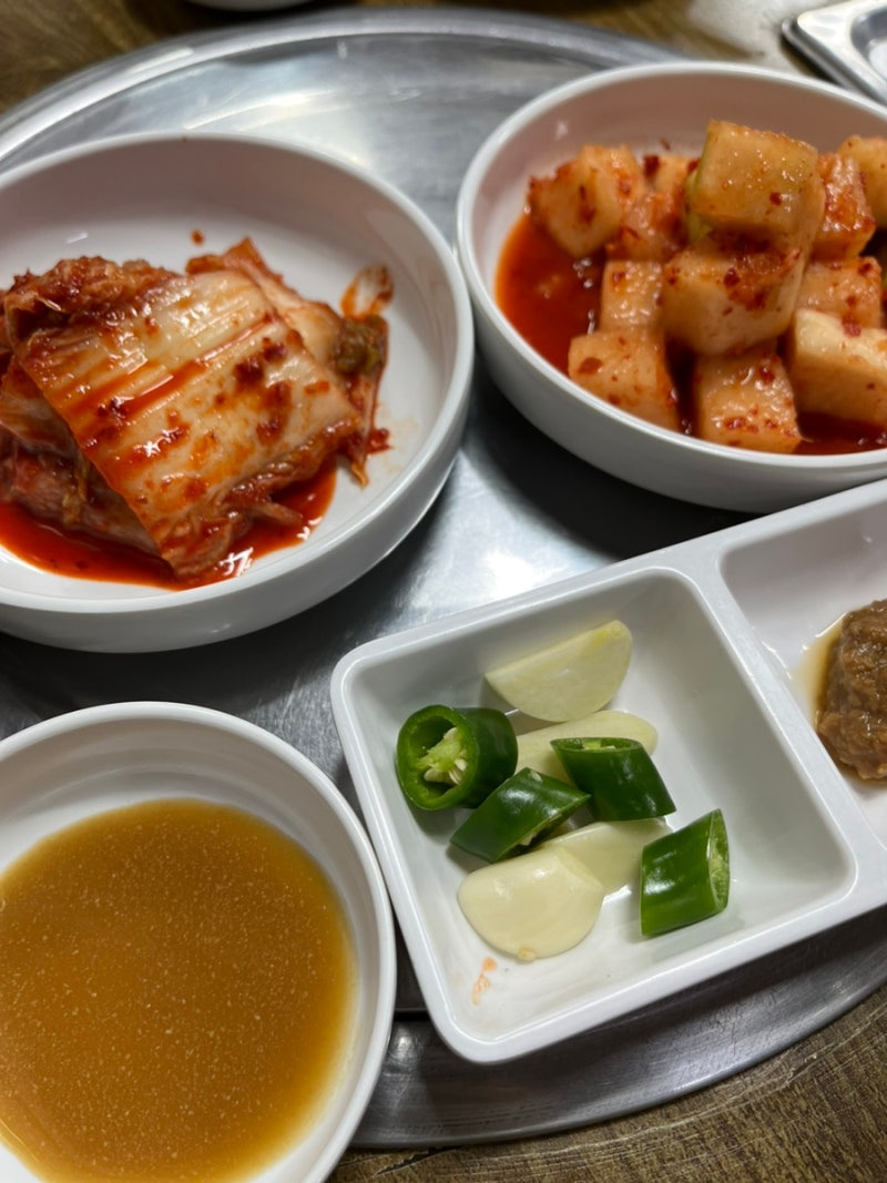 식사와 함께 나오는 반찬도 다양해요. 김치와 여러 가지 나물들이 함께 제공되는데, 이 반찬들이 순대국의 맛을 더욱 돋보이게 해줘요.
