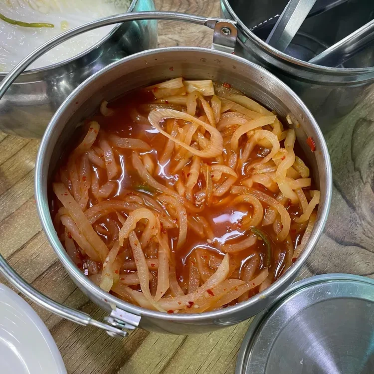 김치와 함께 먹으면 닭개장의 매운맛이 더욱 살아나서 조화로운 맛을 느낄 수 있어요.