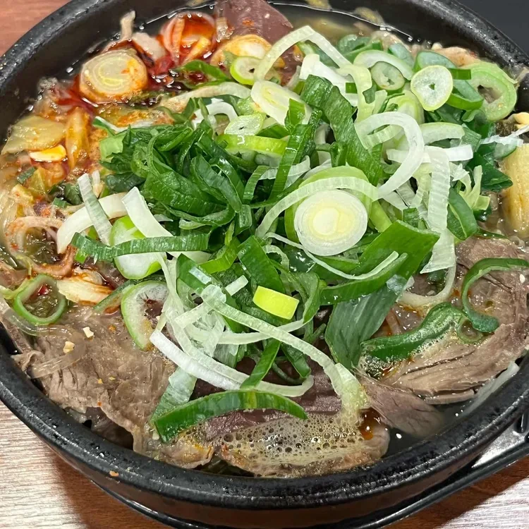 이곳의 대표 메뉴는 해장국이에요. 해장국은 11,000원으로, 푸짐한 양과 깊은 맛이 일품이에요. 국물은 진하고 얼큰하며, 고기와 채소가 아낌없이 들어가 있어요. 특히, 신선한 대파와 고추가 올라가 있어 매콤한 맛을 더해준답니다.