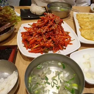 또한, 사이드 메뉴로 나오는 반찬들도 다양하고 맛있어요. 특히, 매콤한 양념의 채소무침이 정말 맛있었어요.