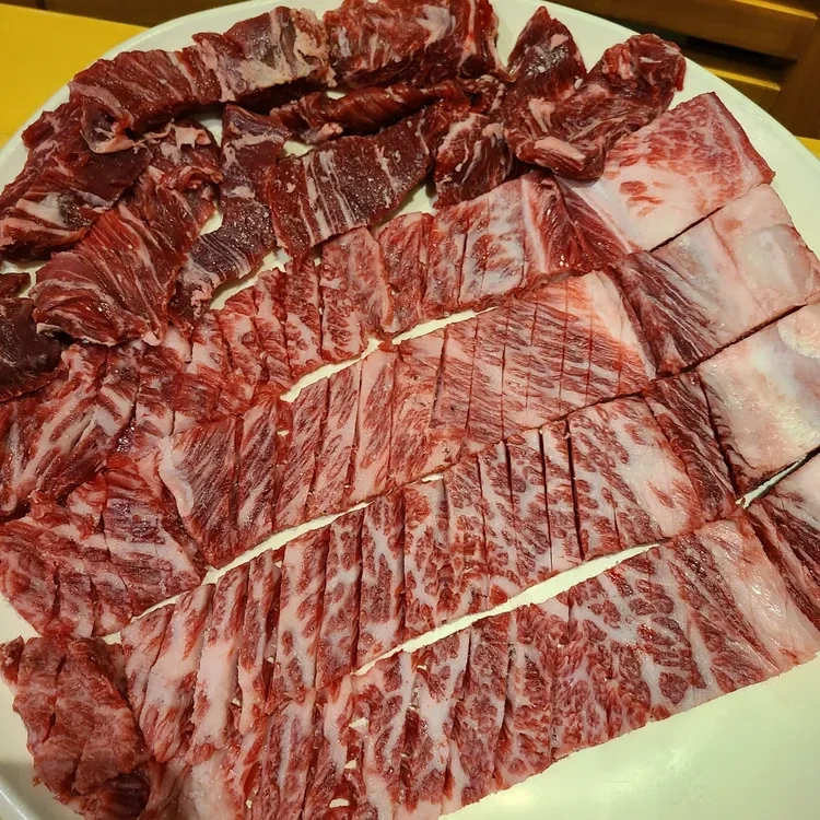 이렇게 정갈하게 준비된 생고기를 볼 수 있어요. 마블링이 잘 되어 있어 육즙이 풍부하고, 고소한 맛이 일품이에요.