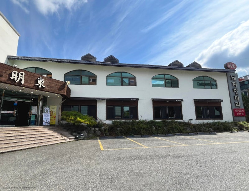 명동돼지한마리는 대구 수성구에 위치해 있어요. 이곳은 대구의 중심가에서 조금 떨어진 곳에 있지만, 그만큼 조용하고 아늑한 분위기를 자랑해요. 식당 외관은 깔끔하고 현대적인 느낌을 주며, 큰 아치형 창문이 인상적이에요.