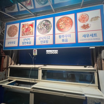 이곳의 추천 메뉴는 바로 '산낙지 철판볶음'과 '왕새우'예요. 산낙지 철판볶음은 신선한 산낙지를 사용해 볶아내며, 비주얼이 정말 먹음직스러워요. 가격은 약 25,000원 정도로, 양도 푸짐해요. 왕새우는 1마리에 15,000원으로, 신선한 맛이 일품이에요. 이 외에도 '고마무침'과 '산낙지 연포탕'도 추천할 만해요.