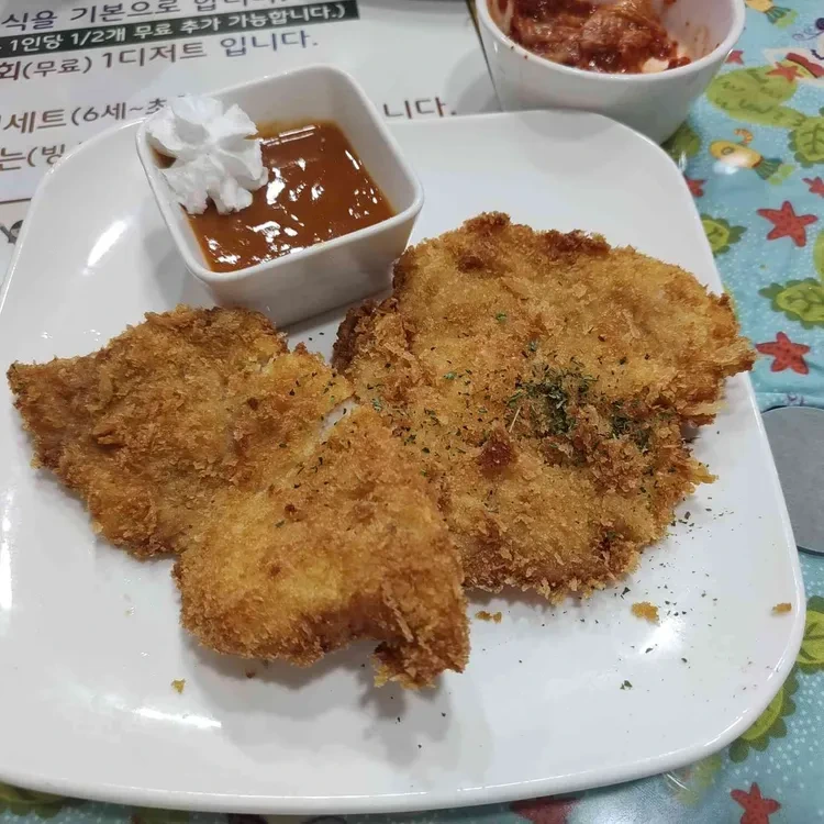 또한, 사이드 메뉴로는 김치와 밥이 제공되며, 김치는 아삭아삭한 식감이 좋고, 밥은 따뜻하게 제공되어 돈까스와 잘 어울려요.