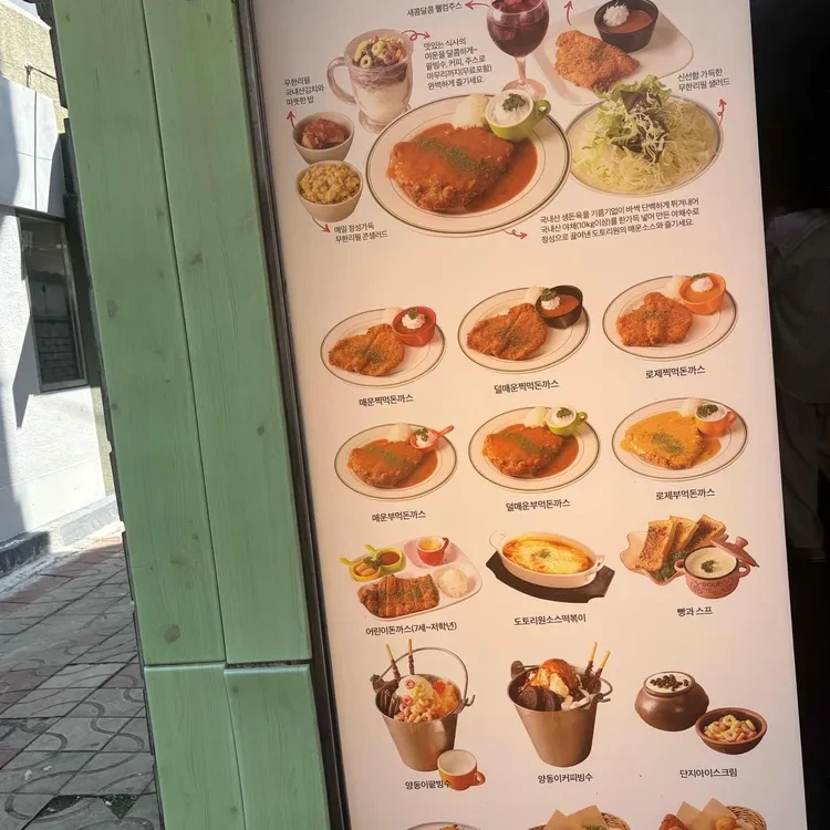 제가 도토리원을 방문했을 때, 친구들과 함께 갔어요. 매운 돈까스를 주문했는데, 정말 맛있었어요! 매운 소스가 적당히 매콤하면서도 깊은 맛이 나서 밥과 함께 먹으니 더욱 맛있더라고요. 그리고 생크림 돈까스도 시켰는데, 부드러운 크림 소스가 정말 환상적이었어요.