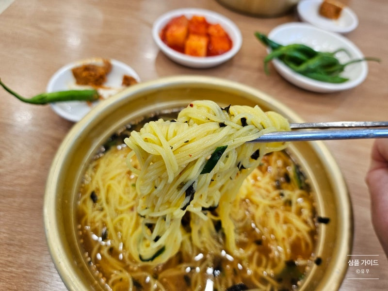멸치소면의 매력은 무엇보다도 그 깊고 진한 육수에 있어요. 멸치를 볶아 만든 육수는 구수하고 담백한 맛이 나며, 소면과의 조화가 정말 훌륭해요.