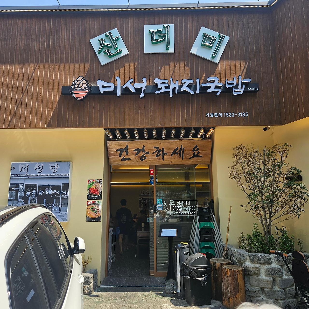 미성돼지국밥은 대구 중구에 위치해 있어요. 대구의 중심가에 있어 접근성이 좋고, 주변에 다양한 상점들이 있어 식사 후 산책하기에도 좋은 장소에요. 식당 외관은 나무로 된 아늑한 느낌을 주며, "건강하세요"라는 문구가 적힌 간판이 인상적이에요.