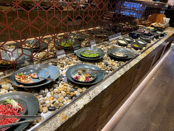 또한, 뷔페 스테이션은 잘 정리되어 있어 음식 선택이 용이하고, 다양한 메뉴를 한눈에 볼 수 있어요.