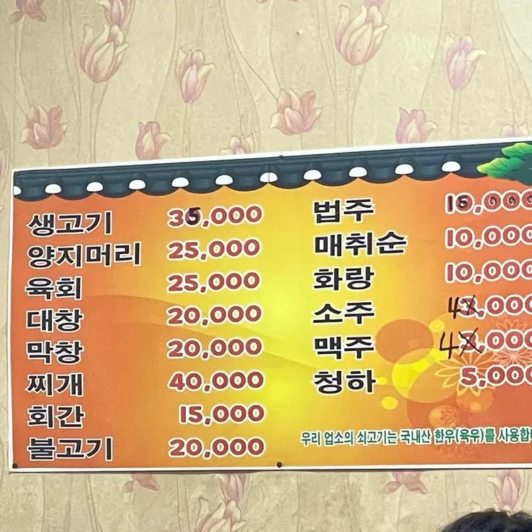 부엉이만두의 메뉴는 다양하고 가격도 합리적이에요. 가장 인기 있는 메뉴는 바로 '부엉이만두'로, 가격은 8,000원이에요. 이 외에도 '생고기'는 35,000원, '양지머리'는 25,000원으로, 다양한 고기 요리도 준비되어 있어요. 사이드 메뉴로는 매취순(10,000원)과 같은 맛있는 반찬도 함께 제공된답니다.