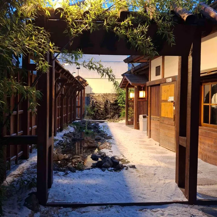 로산가옥의 내부는 전통적인 한국식 건축 양식을 따르고 있어요. 나무 기둥과 따뜻한 조명이 어우러져 아늑한 느낌을 주며, 주변에는 푸른 식물들이 있어 자연과의 조화가 잘 이루어져 있답니다. 특히, 야외 테라스에서는 저녁에 조명이 켜지면 더욱 로맨틱한 분위기를 느낄 수 있어요.