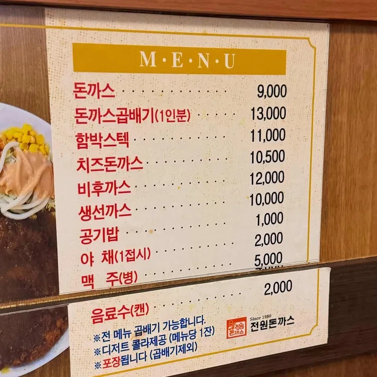전원돈까스의 메뉴는 다양합니다. 기본적인 돈까스 외에도 치즈돈까스, 생선까스, 함박스테이크 등 여러 가지 메뉴가 있습니다. 가격대는 대체로 8,000원에서 13,000원 사이로, 가성비가 뛰어난 편입니다. 특히, 돈까스 콤보 메뉴는 여러 가지를 한 번에 즐길 수 있어 추천합니다.