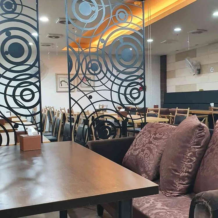또한, 식당의 벽면에는 전통적인 한국의 요소들이 가미되어 있어, 전통과 현대가 조화를 이루는 느낌을 주어요.