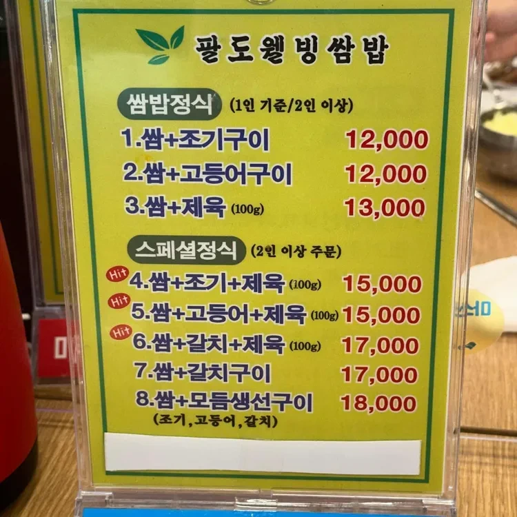 팔도웰빙쌈밥의 메뉴는 다양하고 가격도 합리적이에요. 기본 쌈밥 정식은 12,000원에서 13,000원 사이로, 여러 가지 구운 재료와 함께 제공돼요. 스페셜 정식은 15,000원에서 18,000원으로, 두 명 이상이 함께 즐길 수 있는 복합적인 메뉴가 많아요. 특히, 삼색밥이 인기인데, 이 밥은 색깔이 다채로워 시각적으로도 즐거움을 줘요.