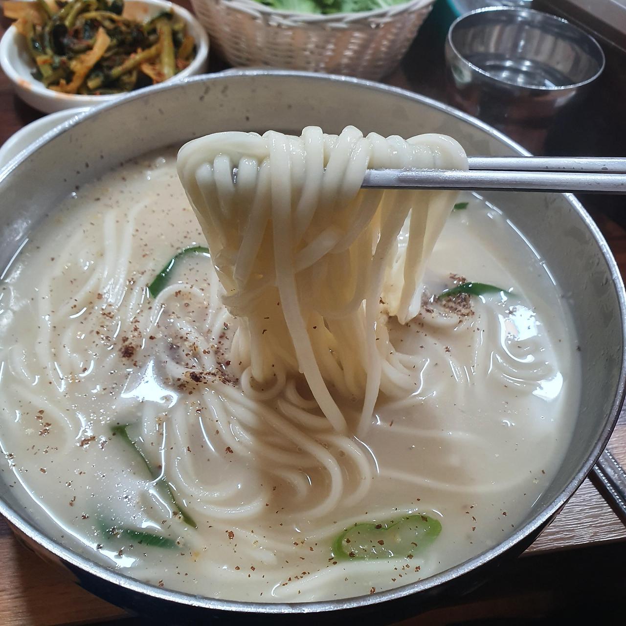 이곳의 대표 메뉴는 바로 칼국수입니다. 기본 칼국수 외에도 수육과 함께 즐길 수 있는 메뉴가 많아요. 특히, 수육은 잡내 없이 부드럽고 깔끔한 맛이 일품입니다. 칼국수와 함께 나오는 다양한 반찬들도 맛있어서, 한 끼 식사로 충분히 만족할 수 있습니다.
