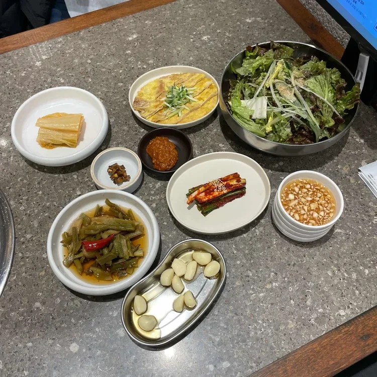 고기를 주문하면 다양한 밑반찬이 함께 제공되는데, 이 밑반찬들이 고기와 정말 잘 어울려요. 특히, 파김치와 함께 먹으면 그 맛이 배가 된답니다.