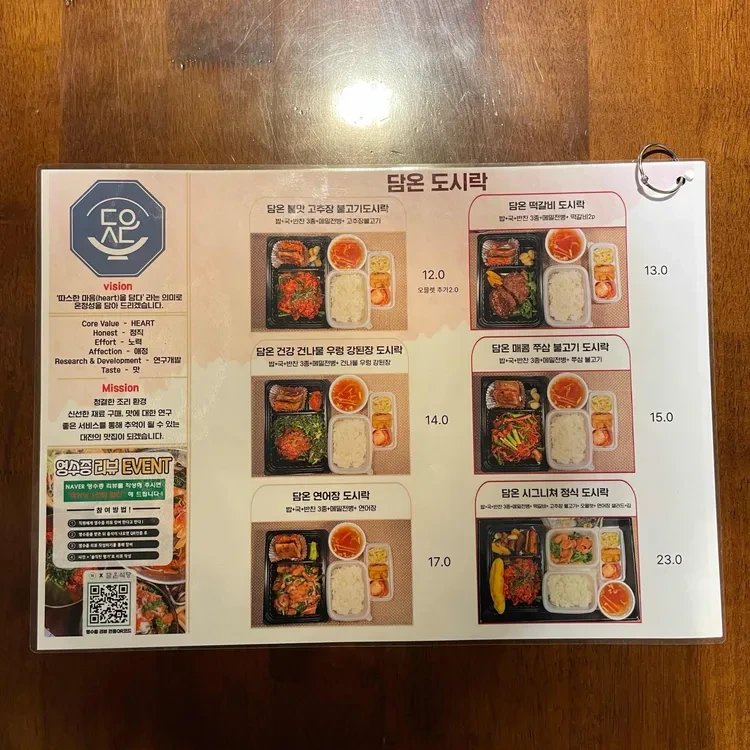 메뉴판을 보면 각 요리의 설명이 잘 되어 있어 선택하는 데 도움이 돼요.
