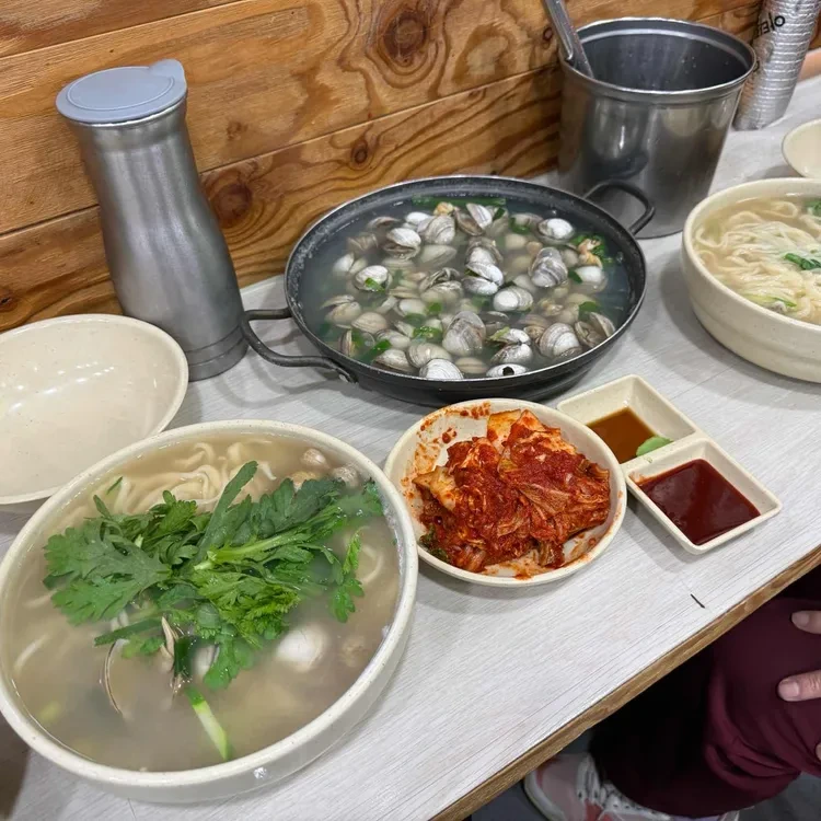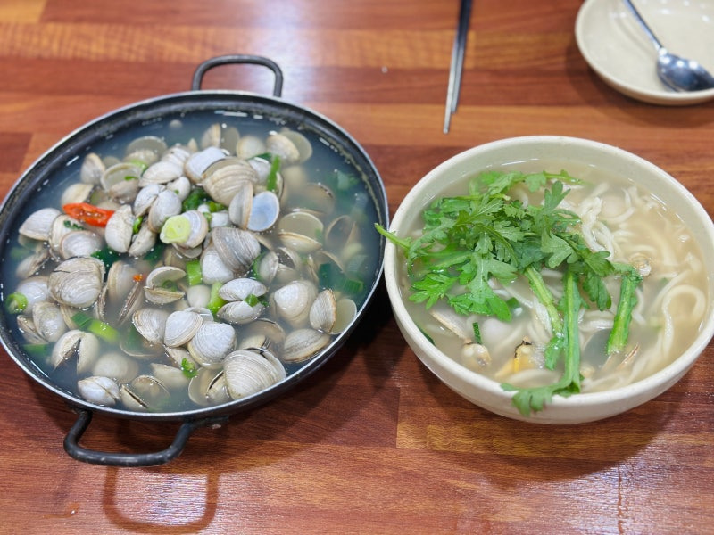 이곳의 대표 메뉴는 해산물 칼국수와 물총조개인데요, 칼국수는 신선한 해산물로 가득해 풍미가 정말 뛰어나요. 가격대는 1인분 기준으로 해물 칼국수가 약 8,000원, 물총조개는 1kg에 30,000원 정도인데, 양이 푸짐해서 가성비가 굉장히 좋아요. 해물파전도 인기 메뉴 중 하나로, 바삭한 식감이 일품이에요.