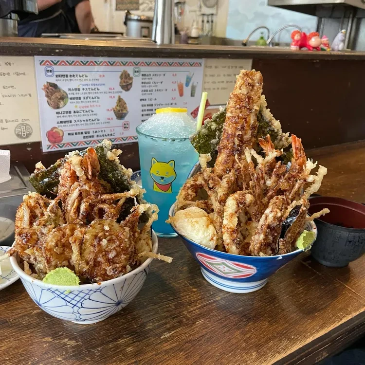 와타요업의 대표 메뉴는 바로 텐동이에요. 신선한 해산물과 채소를 바삭하게 튀겨낸 후, 따뜻한 밥 위에 올려주는 이 요리는 정말 맛있어요. 특히, 대왕 새우 텐동은 그 크기와 맛에서 많은 손님들의 사랑을 받고 있어요. 가격은 대왕 새우 텐동이 약 15,000원, 일반 텐동은 10,000원 정도로, 가성비도 뛰어나요.