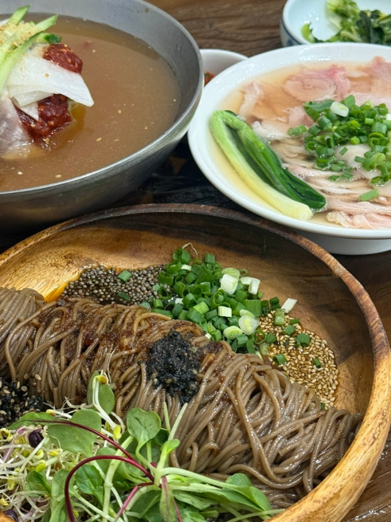 냉면 외에도 다양한 사이드 메뉴가 있어요. 특히, 숯불고기와 함께 즐기면 더욱 맛있답니다. 고기의 풍미가 냉면과 잘 어우러져, 한 끼 식사로도 손색이 없어요.
