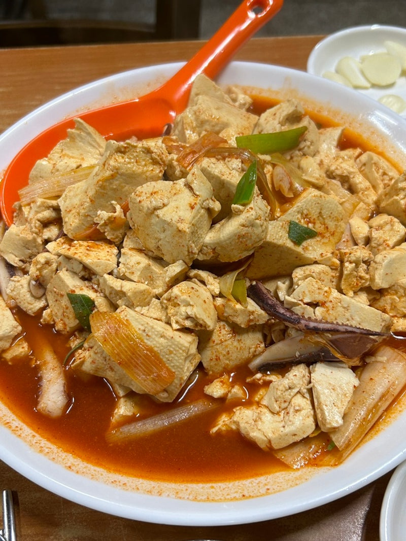 식사 후에는 우동사리를 추가해서 비벼 먹었는데, 이 조합이 정말 환상적이었어요! 두부의 부드러움과 매콤한 양념이 어우러져서 입맛을 사로잡았답니다.