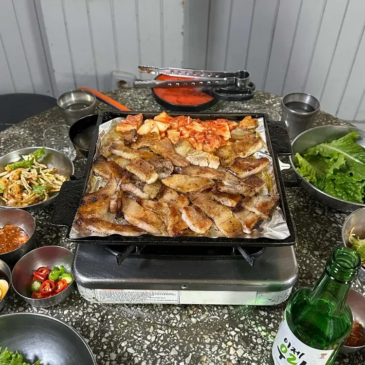 고기를 구워내는 모습은 정말 먹음직스러워요. 잘 구워진 고기와 함께 나오는 김치는 매콤하고 아삭아삭한 식감이 일품이에요. 고기와 함께 싸먹으면 그 조화가 정말 환상적이죠.