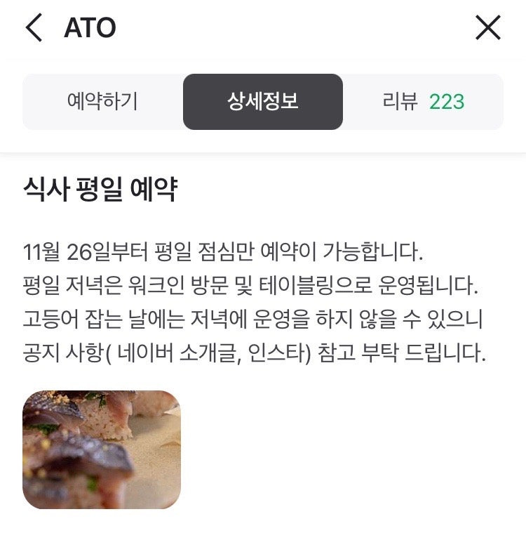 ATO는 예약이 가능하니, 미리 예약하고 가는 것을 추천해요. 특히 주말에는 손님이 많아서 대기 시간이 길어질 수 있으니, 꼭 확인해보세요. 예약은 Naver와 Instagram을 통해 가능하답니다.