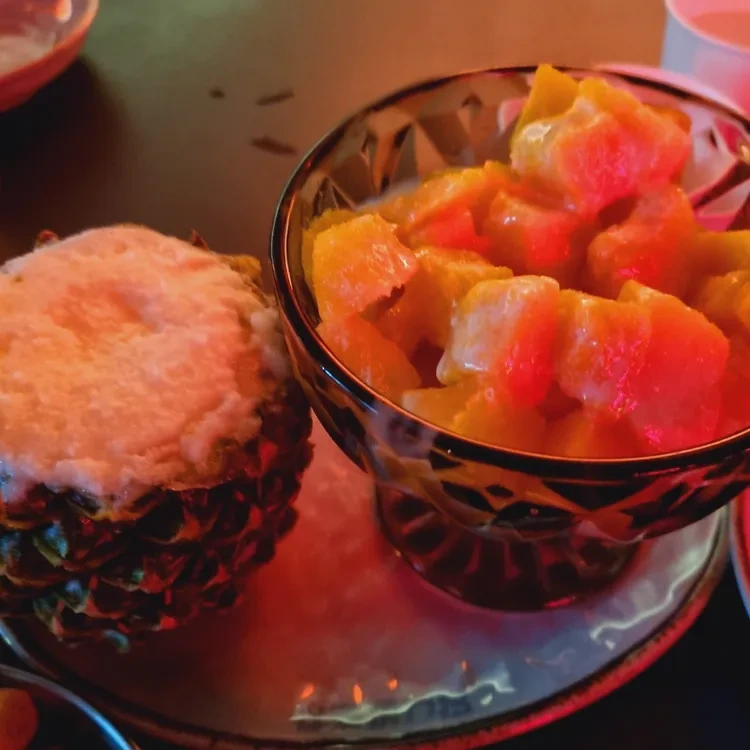 꼬리찜은 부드러운 고기와 함께 나오는 소스가 일품이었답니다. 그리고 후식으로 나오는 과일도 신선하고 달콤했어요.