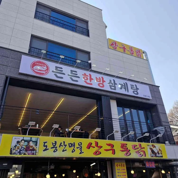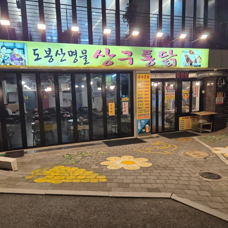 상구통닭은 도봉구 도봉산4나길 39에 위치해 있어요. 이곳은 현대적인 디자인의 건물에 자리 잡고 있으며, 외관이 매우 매력적이에요.