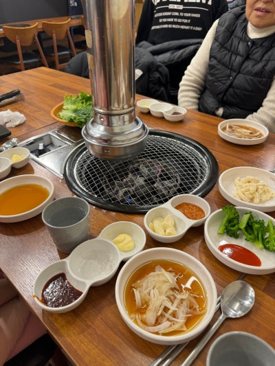 식당 내부는 아늑하고 따뜻한 분위기로 꾸며져 있어요. 나무 테이블과 의자들이 조화를 이루며, 고기 구워먹기 좋은 환경을 제공해줍니다. 특히, 고기 구울 때 나는 향이 식욕을 자극해요.