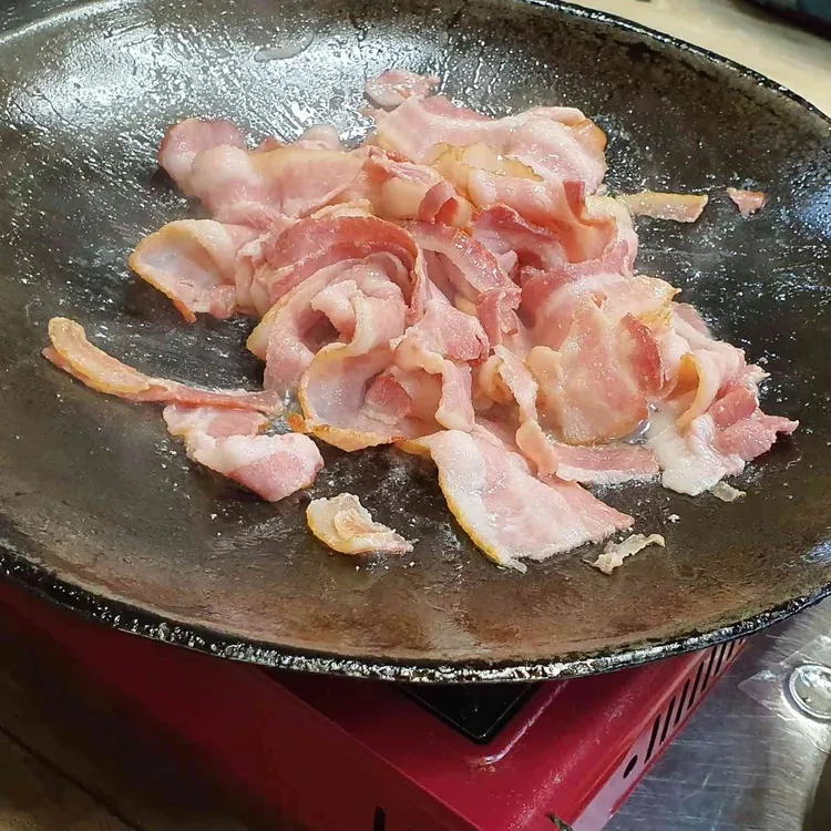 이곳의 추천 메뉴는 무엇보다도 베이컨과 두부가 함께 나오는 솥뚜껑 요리예요. 베이컨은 기름이 적당히 빠져서 바삭하게 구워지고, 두부는 부드럽고 고소한 맛이 일품이에요. 또한, 다양한 사이드 메뉴로는 매콤한 김치와 신선한 채소가 함께 제공되어, 맛의 조화를 이루어요.