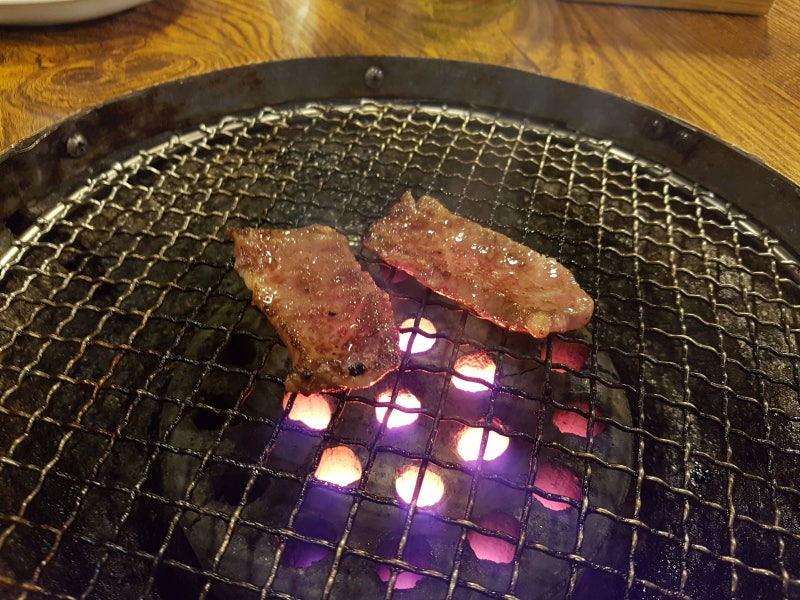 이 사진은 고기가 숯불 위에서 구워지는 모습인데, 그 향이 정말 군침을 돌게 해요.