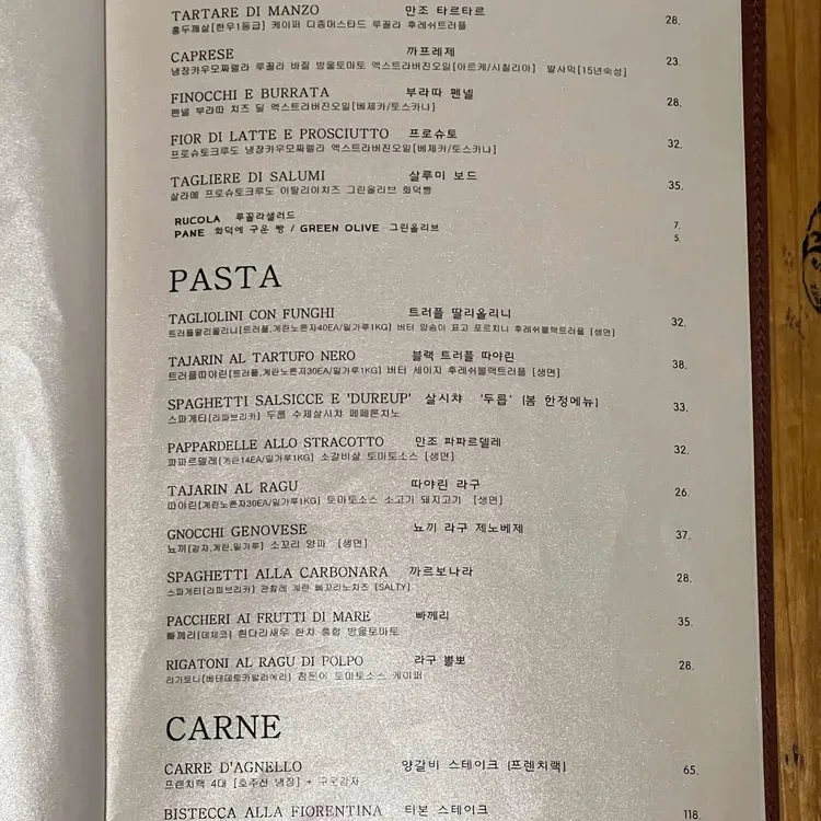 빠넬로의 메뉴는 다양하고, 가격대도 적당해요. 추천 메뉴로는 '타르타르 디 만조'와 '타글리올리니 콘 푼기'가 있어요. 가격은 각각 18,000원과 25,000원 정도로, 퀄리티에 비해 합리적인 편이에요.