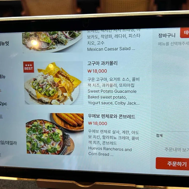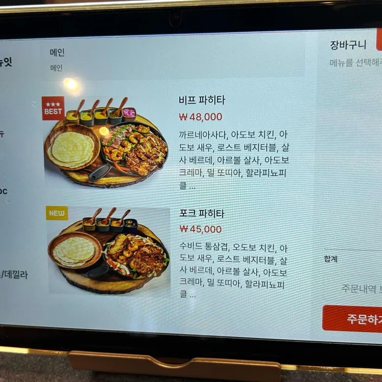 익스첼의 메뉴는 정말 다양해요. 특히 비프 파히타와 포크 파히타는 많은 사람들이 추천하는 인기 메뉴입니다. 비프 파히타는 ₩48,000, 포크 파히타는 ₩45,000으로 가격대도 적당해요. 이 외에도 다양한 타코와 토스타다, 그리고 고구마 과카몰리 같은 사이드 메뉴도 있어요. 고구마 과카몰리는 ₩18,000으로, 달콤한 고구마와 크리미한 요거트 소스가 어우러져 정말 맛있답니다.