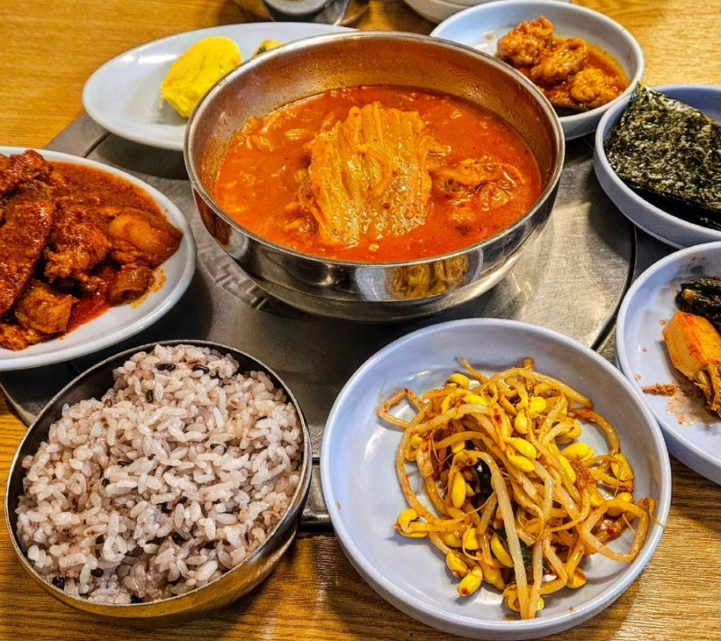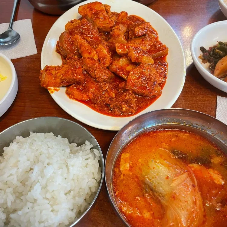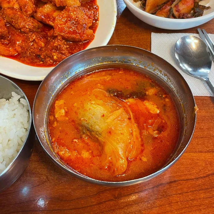 이 식당은 특히 김치찌개와 제육볶음으로 유명해요. 김치찌개는 신김치로 만들어져 시큼하면서도 깊은 맛이 나고, 제육볶음은 매콤하면서도 고기의 풍미가 살아있어요. 가격은 김치찌개가 약 8,000원, 제육볶음은 10,000원 정도로, 가성비가 뛰어난 편이에요.