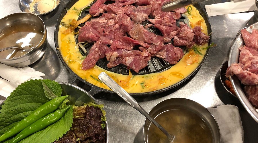 또한, 이곳의 특별한 점은 고기를 구울 때 사용하는 그릴이 독특하다는 거예요. 고기 주변에 계란물이 둘러져 있어, 고기를 구우면서 자연스럽게 계란도 익혀 먹을 수 있어요. 이 조합이 정말 맛있답니다.