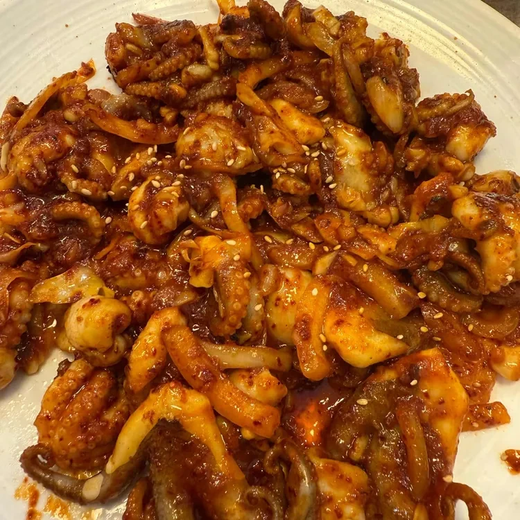 만복이 쭈꾸미낙지볶음은 비주얼도 정말 매력적이에요. 매콤한 소스에 쭈꾸미와 낙지가 어우러져 색감이 화려하고, 그 위에 뿌려진 깨가 식감을 더해줍니다. 이 요리는 친구들과 함께 나눠 먹기에도 좋고, 사진 찍기에도 정말 좋은 비주얼을 가지고 있어요.