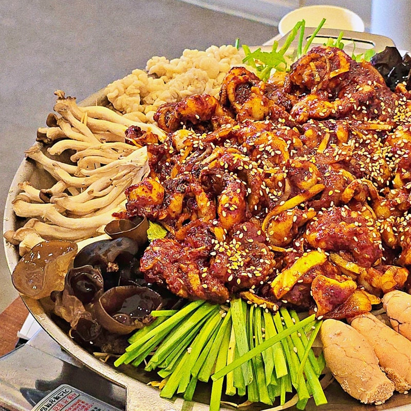 만복이 쭈꾸미낙지볶음은 한국의 전통 해산물 요리 중 하나로, 주로 쭈꾸미와 낙지를 매콤한 소스에 볶아낸 요리예요. 이 요리는 해산물의 신선함과 매운 소스의 조화가 일품인데요, 특히 쭈꾸미의 쫄깃한 식감과 낙지의 부드러움이 어우러져 정말 맛있답니다.
