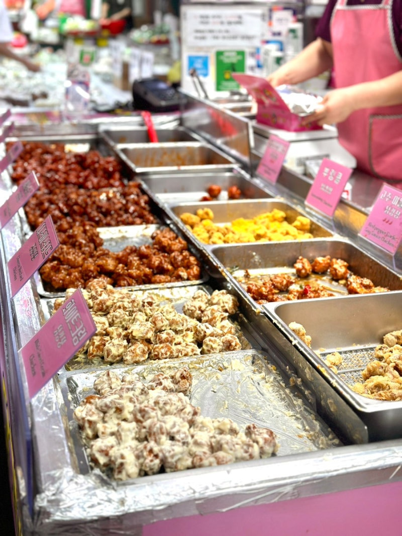 망원시장은 다양한 먹거리와 볼거리가 가득해요. 큐스닭강정에서 식사를 한 후에는 시장을 돌아다니며 다른 먹거리도 즐길 수 있어요. 특히, 시장 내의 다양한 상점과 노점들이 매력적이어서 구경하는 재미가 쏠쏠하답니다.
