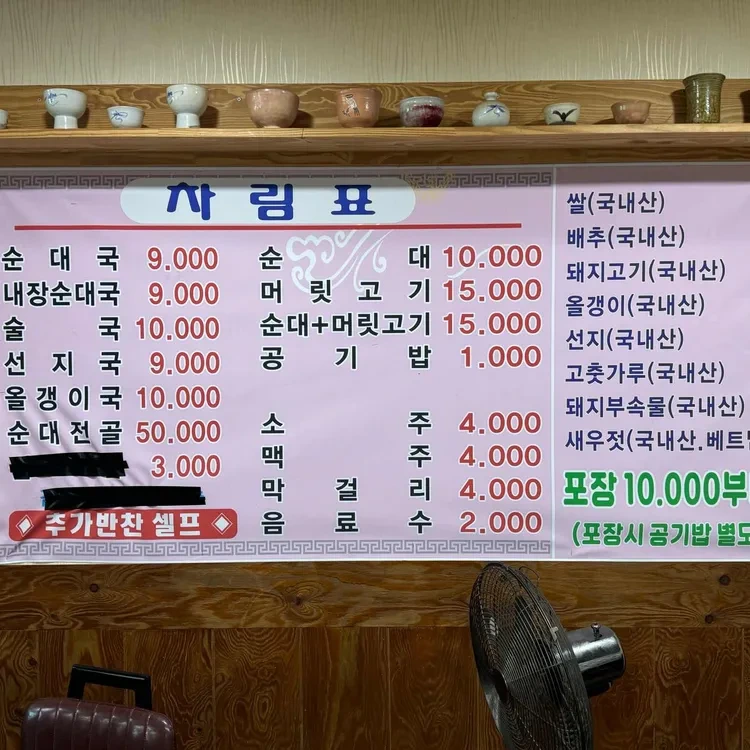 메뉴판을 보면 다양한 종류의 국밥과 함께 소주, 맥주 등의 음료도 저렴한 가격에 제공되고 있어요. 특히, 순대국밥 외에도 술국과 같은 다른 메뉴도 추천할 만해요.