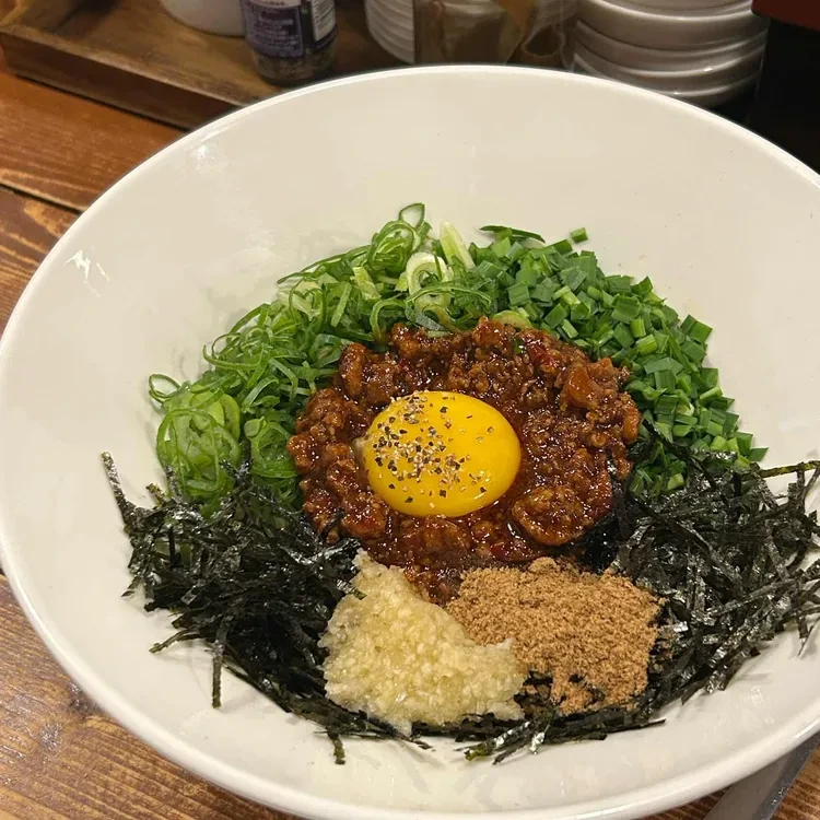 마제소바는 비빔면 스타일로, 고소한 맛이 일품이에요. 노른자를 섞어 먹으면 더욱 부드러운 맛을 느낄 수 있어요.