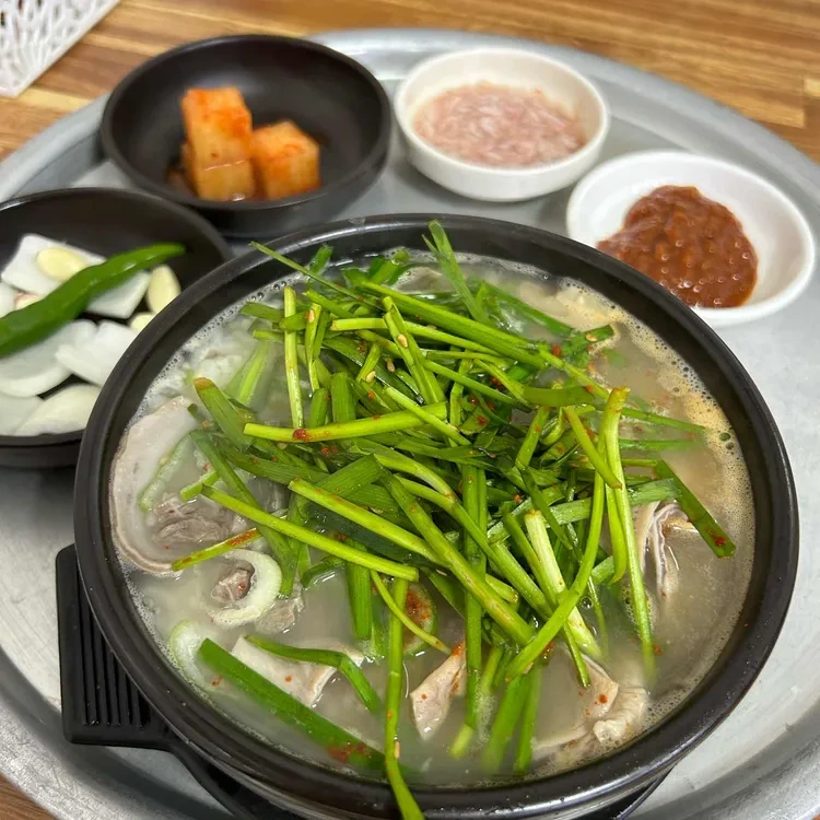 국밥이 나오는 모습은 정말 먹음직스러워요. 뜨끈한 국밥 위에 올려진 파와 고기, 그리고 다양한 반찬들이 식욕을 자극해요.
