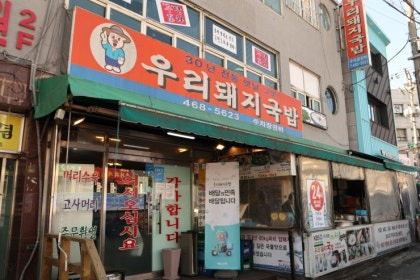우리돼지국밥은 부산 동구 초량동에 위치해 있어요. 이곳은 24시간 운영되기 때문에 언제든지 방문할 수 있는 장점이 있답니다. 외관은 아담하면서도 아늑한 느낌을 주고, 입구에는 다양한 프로모션 포스터가 붙어 있어요. 특히, 밝은 조명과 함께 전통적인 한국 건축 양식이 어우러져 있어 지나가는 사람들의 시선을 사로잡는답니다.