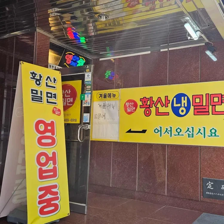 황산밀면은 1977년에 개업한 전통 있는 밀면집이에요. 부산 동구 중앙대로180번길 6-11에 위치해 있으며, 부산역에서 도보로 5분 거리에 있어 접근성이 아주 좋아요. 이곳은 오랜 역사만큼이나 많은 사랑을 받고 있는 곳이랍니다.