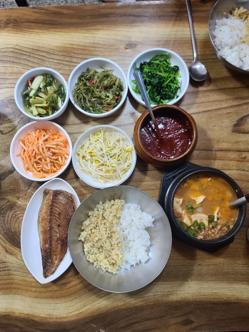 보리밥과 함께 나오는 다양한 반찬들도 정말 맛있어요. 특히, 고등어구이는 이곳의 자랑거리 중 하나로, 바삭하게 구워져 나와서 보리밥과 함께 먹으면 정말 환상적이에요.