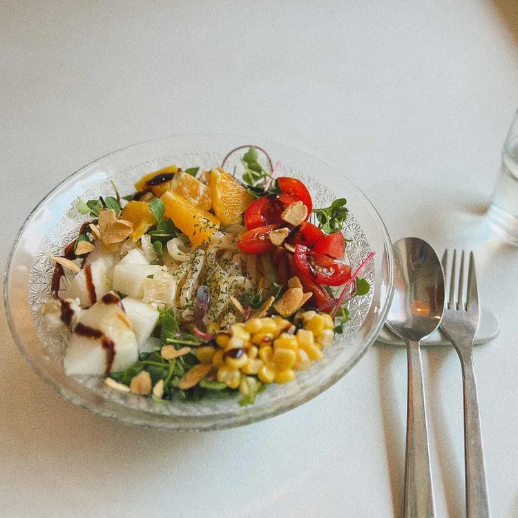 - 비건 샐러드 : 신선한 채소와 과일이 어우러진 샐러드로, 발사믹 드레싱이 곁들여져 있어요. 가격은 9,000원이에요.