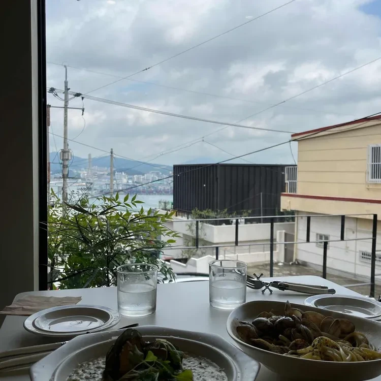 식당 내부는 모던하고 세련된 인테리어로 꾸며져 있어요. 바다를 바라보며 식사할 수 있는 큰 창문이 있어, 자연광이 가득 들어와요. 특히 저녁 시간에는 조명이 아늑하게 켜져 로맨틱한 분위기를 자아내요.